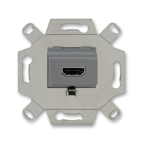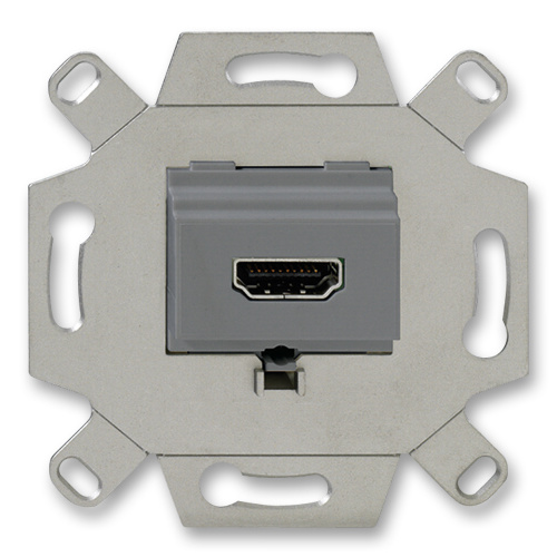Zásuvka komunikační HDMI. S odlehčovací sponou. Pro přenos digitálního video a audio signálu s vysokým rozlišením kabelem HDMI. Např. pro připojení satelitního přijímače, přehrávače DVD nebo Blu-ray médií k televizoru či monitoru s rozhraním HDMI. 1 zásuvka HDMI typu A, možnost full HD (1920 × 1080 pixelů) a 3D provozu. Šroubové připojení 20ti žilového kabelu HDMI. Vestavná hloubka: 34 mm. Je nutné dodržet max. délku kabelu a poloměry ohybu doporučené výrobcem kabelu nebo připojeného přístroje.