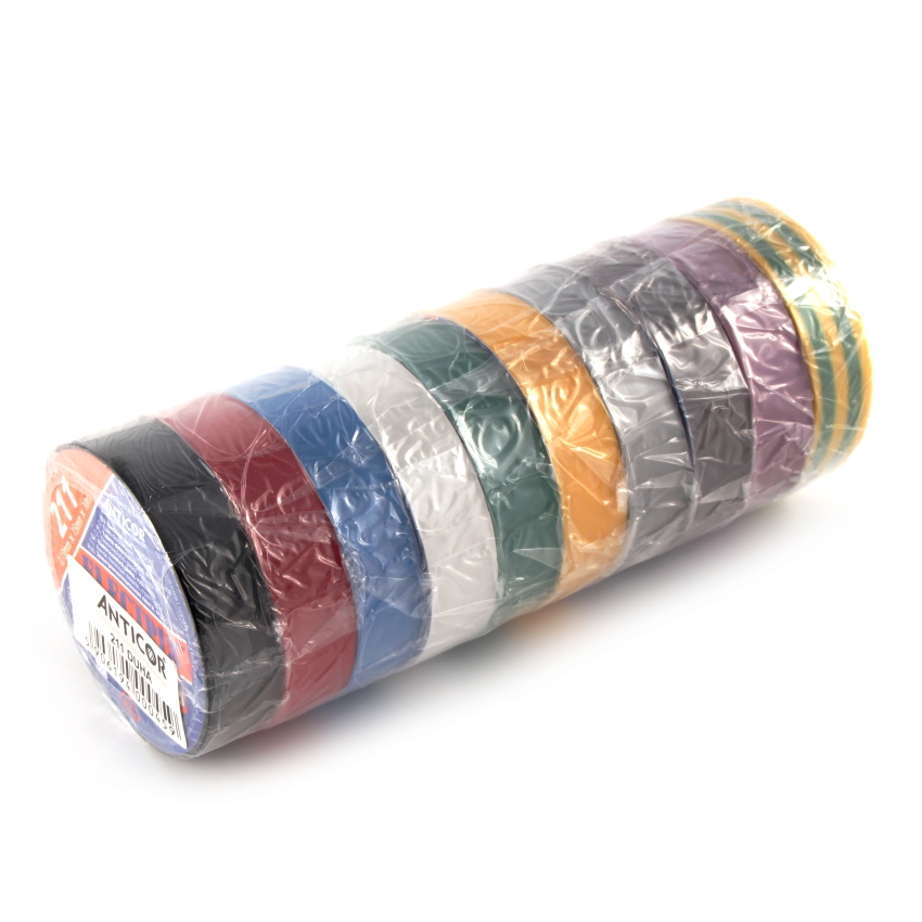 - Izolační páska plastová, šířka 15mm, délka 10metrů, sada 10ks - různé barvy (černá, červená, modrá, bílá, zelená, žlutá, šedá, hnědá, fialová, žluto-zelená)