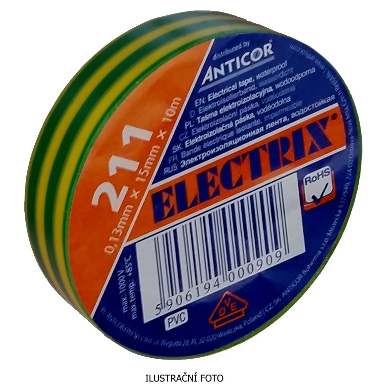 Páska izolační 211 Electrix PVC 15mm x 10m, žlutozelená