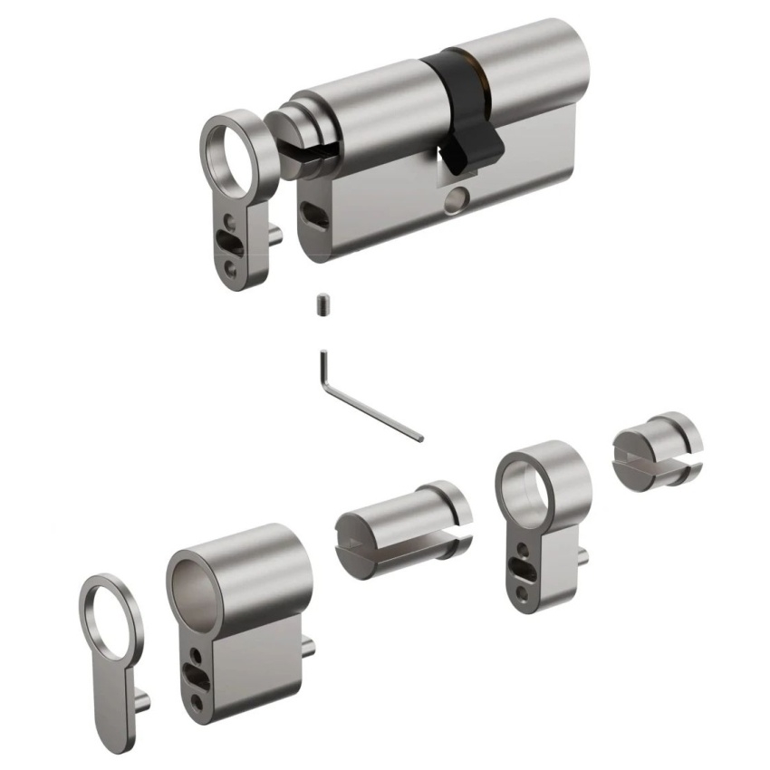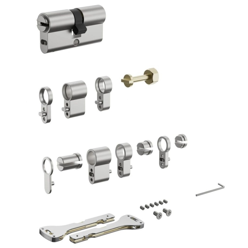 AQARA Adjustable Cylinder (AL-D04E) představuje vylepšenou verzi nastavitelného válce určeného pro AQARA Smart Lock U200. Tento modulární válec umožňuje snadné přizpůsobení délky od 62 mm do 132 mm, přičemž vnější část má rozsah 32-67 mm a vnitřní část 30-65 mm. Díky vestavěné nouzové funkci lze dveře zamknout z vnější strany klíčem i po instalaci inteligentního zámku. Součástí balení jsou čtyři klíče, adaptér válce, šroubovák a sada šroubů, což usnadňuje instalaci a přizpůsobení.