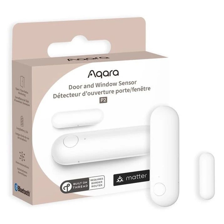 AQARA Door and Window Sensor P2 (DW-S02D) je inteligentní kontaktní senzor s nativní podporou protokolu Thread a standardu Matter, který umožňuje přímé připojení k Thread border routerům třetích stran. Senzor disponuje nastavitelnou citlivostí v rozsahu 1-3 cm, programovatelným tlačítkem a alarmem proti manipulaci. Díky baterii CR123A nabízí dlouhou výdrž a umožňuje lokální automatizace bez nutnosti cloudového připojení, což zvyšuje bezpečnost a soukromí uživatele.