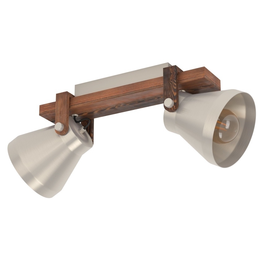 Stropní svítidlo CAWTON 43949 přináší jedinečný design spojující rustikální prvky s industriálním stylem. Je vyrobeno z hnědého páleného dřeva a kovového rámu v krémové barvě, který doplňují dvě otočná stínidla z matné oceli. Díky otočným světelným bodům můžete snadno nasměrovat světlo přesně tam, kde je potřeba, a vytvořit tak ideální osvětlení pro každou místnost. Svítidlo je vhodné pro obývací pokoje, ložnice, jídelny i chodby. Je určeno pro dvě žárovky s paticí E27 a maximálním výkonem 2×40 W, které nejsou součástí balení, což vám dává možnost vybrat si světelný zdroj podle svých preferencí.
