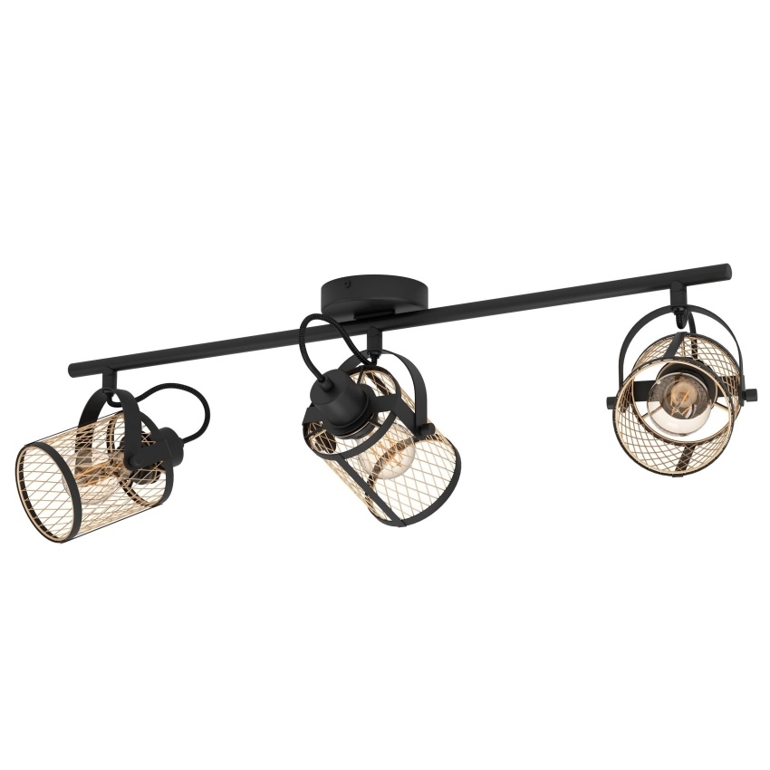Bodové svítidlo EGLO DELLOW v elegantní kombinaci černé a mosazné barvy zaujme svým moderním designem. Mosazná mřížka kolem žárovek dodává svítidlu jedinečný vzhled. Tři pohyblivé hlavice umožňují snadno nasměrovat světlo přesně tam, kde je potřeba. Svítidlo je vhodné k instalaci na strop nebo stěnu a hodí se do obývacího pokoje, kuchyně, chodby či pracovny. Žárovky s paticí E27 nejsou součástí balení.