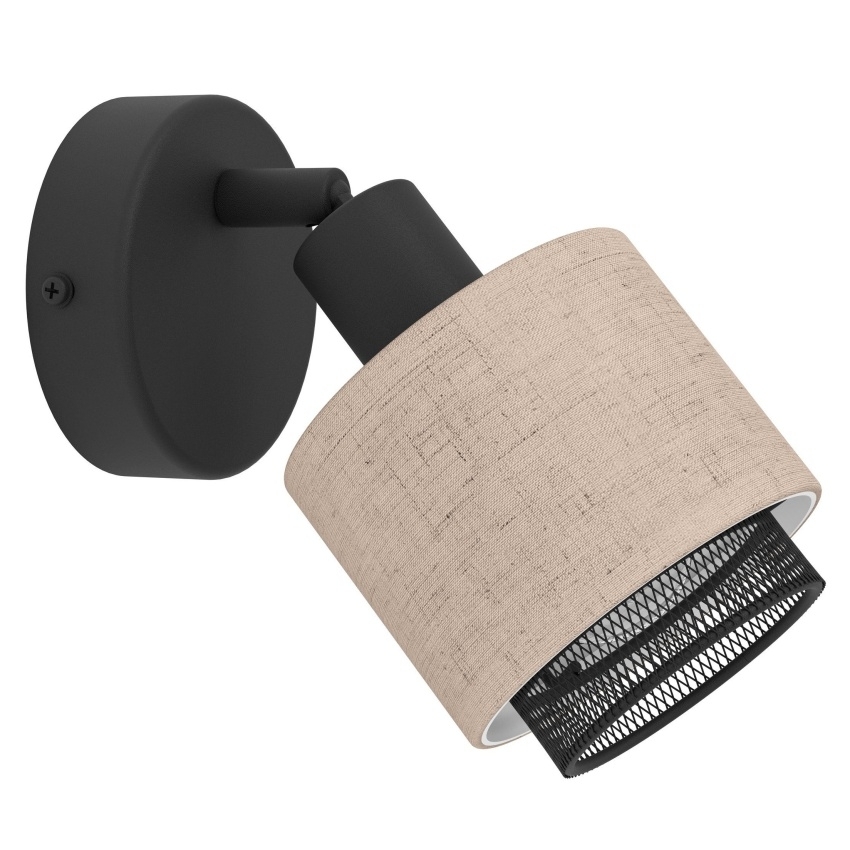 Stylové nástěnné bodové svítidlo EGLO ROSLEY v černém provedení s přírodním textilním stínidlem z lnu pro jemné a útulné osvětlení.