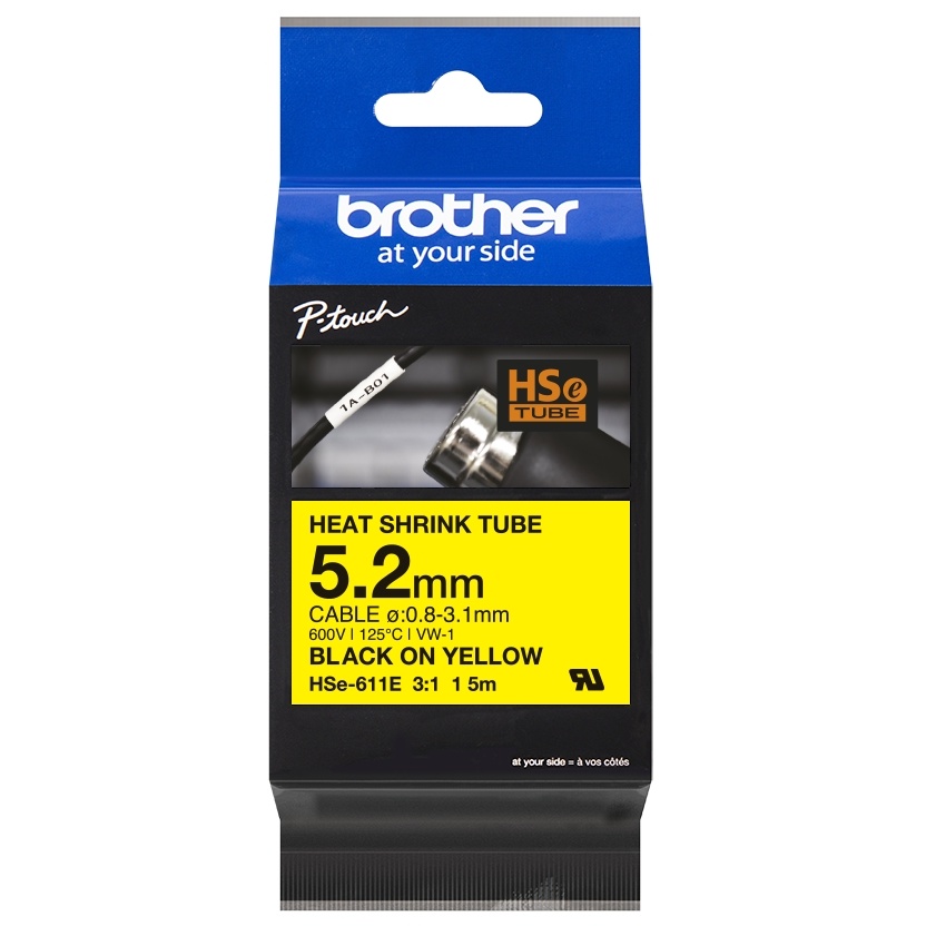 BROTHER BUŽÍRKA SMRŠŤOVACÍ HSE-611E ŽLUTÁ/ČERNÁ 3:1 Š. 5,2MM DÉLKA 1,5M Z ŘADY PRO TAPE ZNAČENÍ VODIČŮ O PRŮMĚR. 0,8-3,1MM
