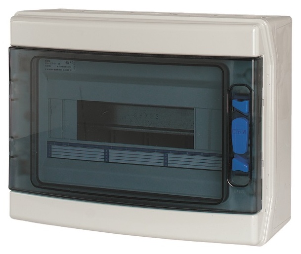 Rozvodnice na omítku, ze série IKA. S průhlednými dvířky