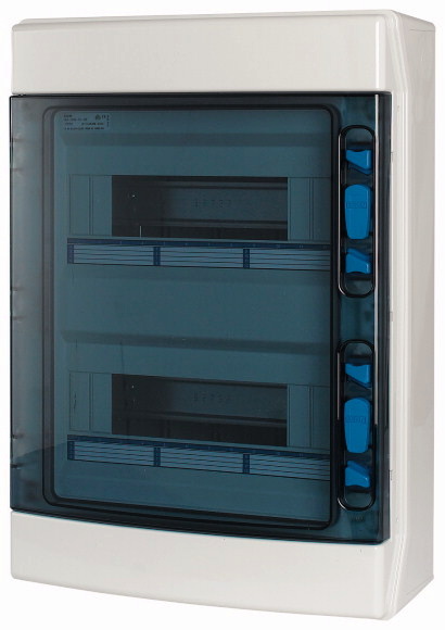 Rozvodnice na omítku, ze série IKA. S průhlednými dvířky