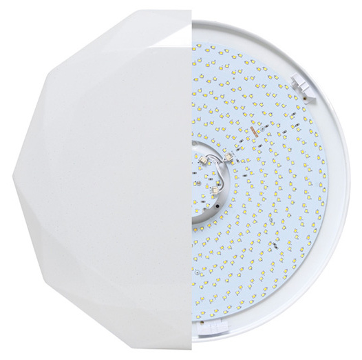 - Moderní stropní svítidlo DIAMANT s typovým označením WZSD využívá vysoce úspornou LED technologii (SMD2835) se 2 druhy čipů, které zajišťují přepínání mezi studeným a teplým světlem. Součástí balení je dálkové ovládání pro pohodlné nastavení barvy a intenzity světla a dalších funkcí jako je noční osvětlení nebo ukládání do paměti.
