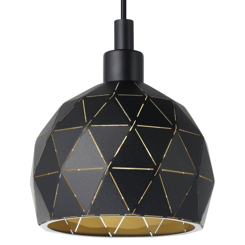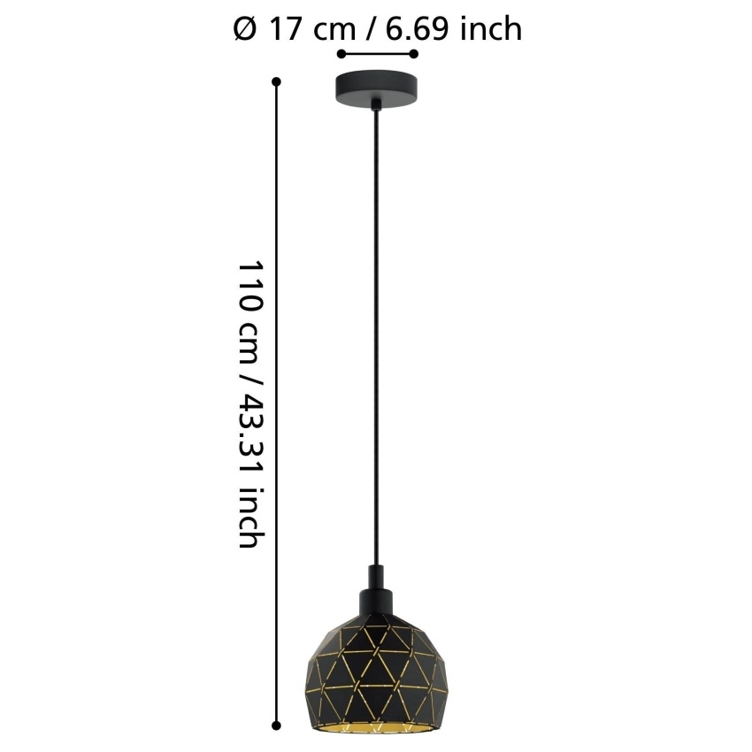 Elegantní závěsné svítidlo Eglo ROCCAFORTE v černé barvě se zlatým vnitřkem, určeno pro žárovku E14.