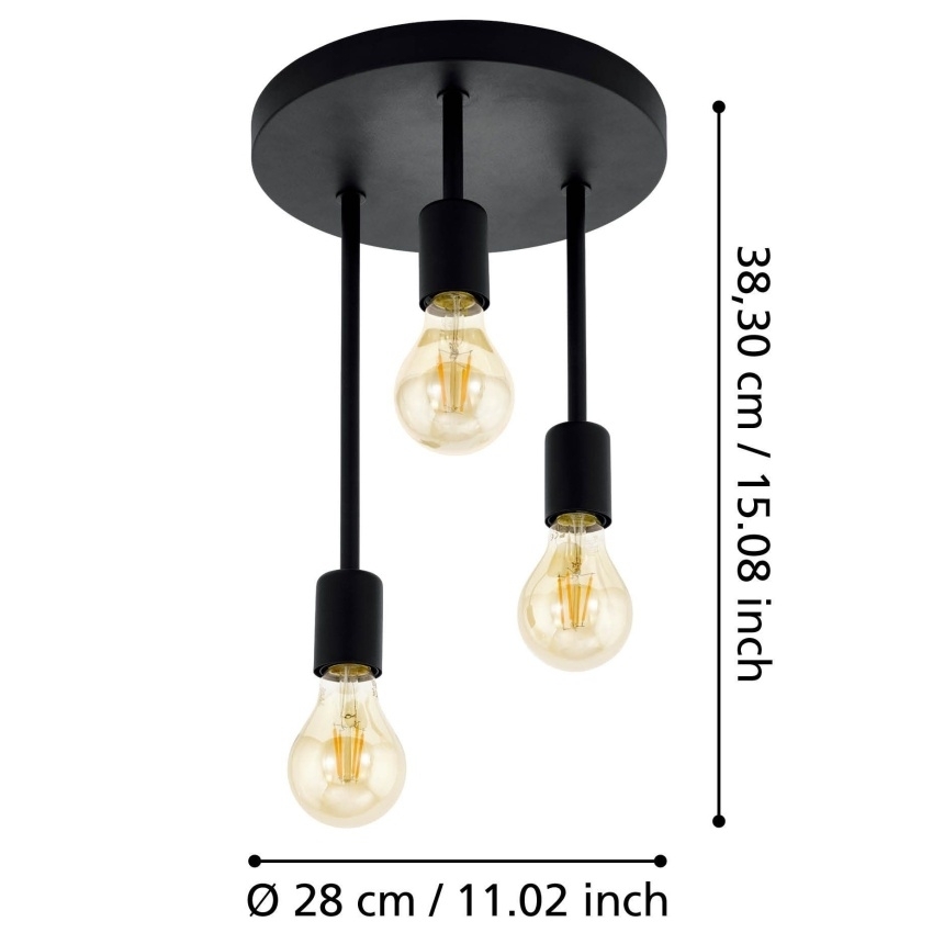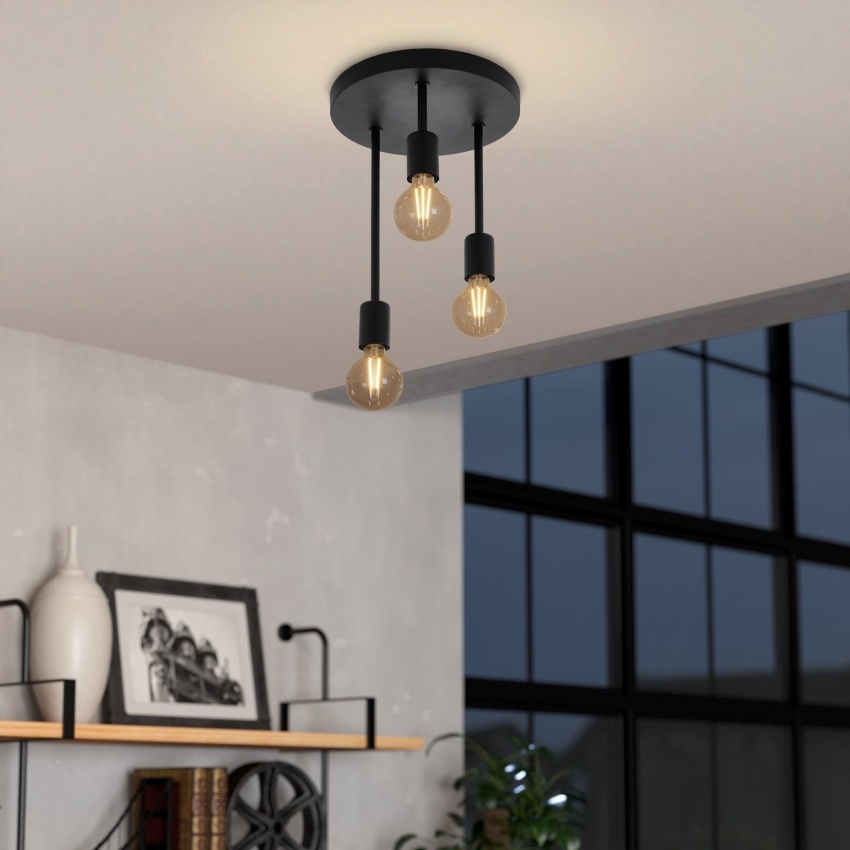 Stropní svítidlo Eglo WILMCOTE v černém provedení s minimalistickým designem, určeno pro 3 žárovky s paticí E27.