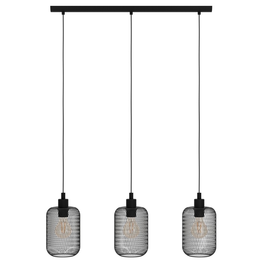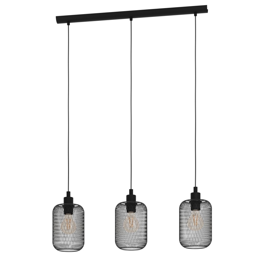Závěsné svítidlo Eglo WRINGTON z černého kovu se třemi paticemi E27, délka 74 cm.