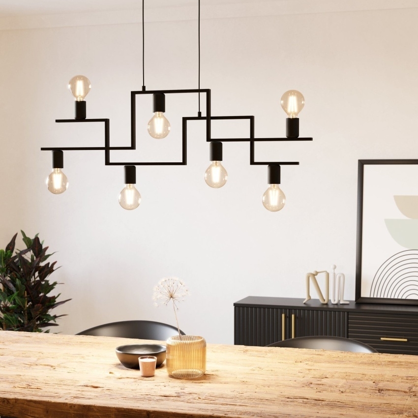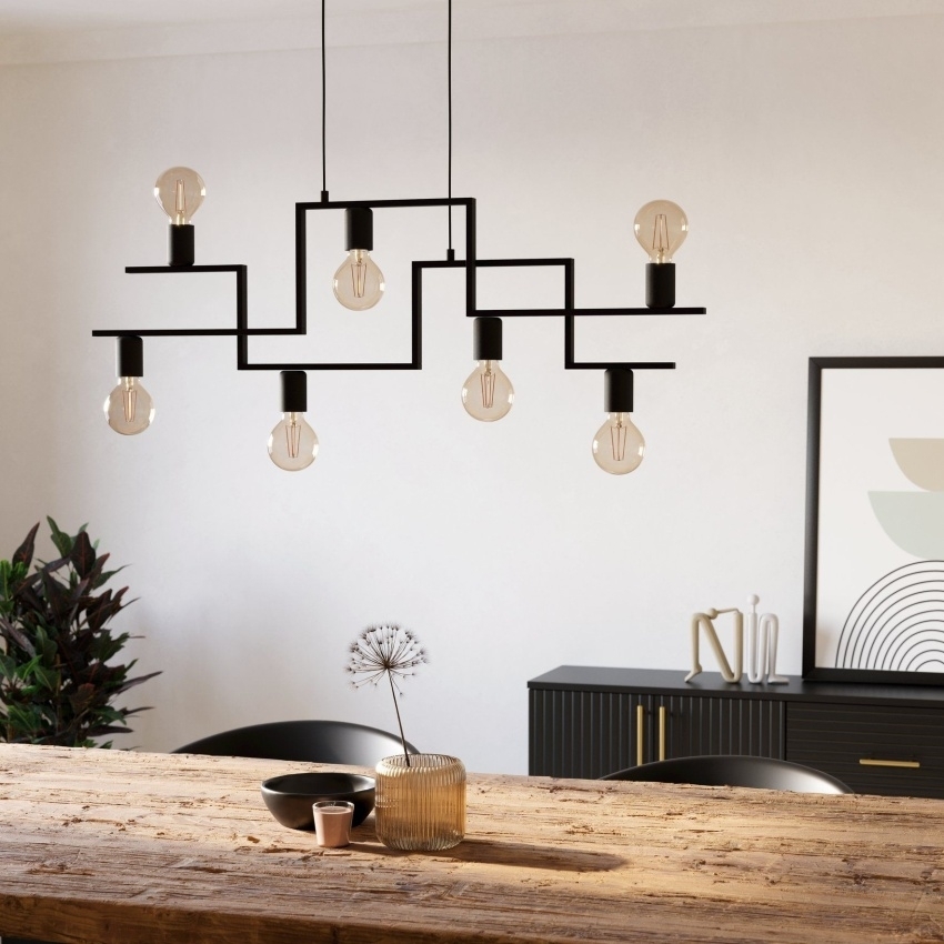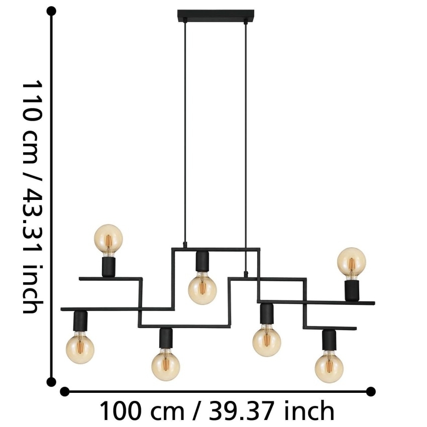 Designové závěsné svítidlo Eglo FEMBARD s 7 paticemi E27 v černém provedení.