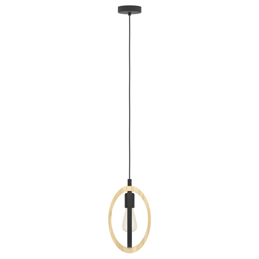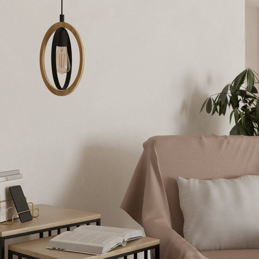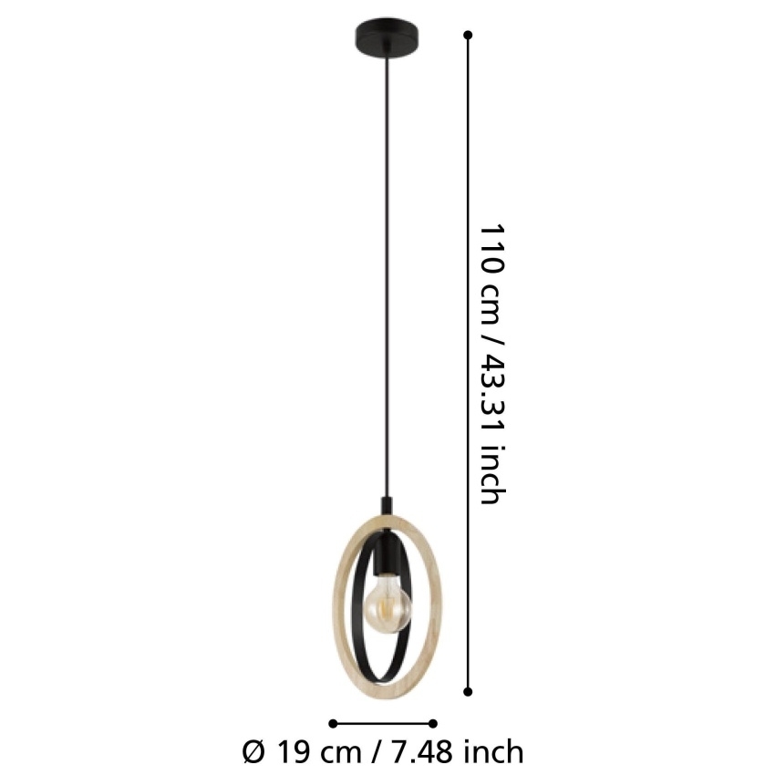 Designové závěsné svítidlo Eglo BASILDON z černého kovu a hnědého dřeva s paticí E27.