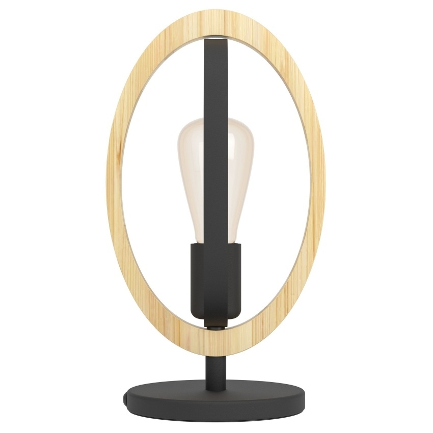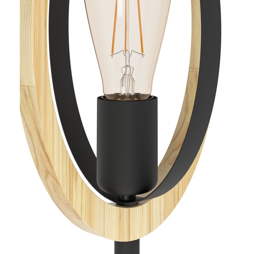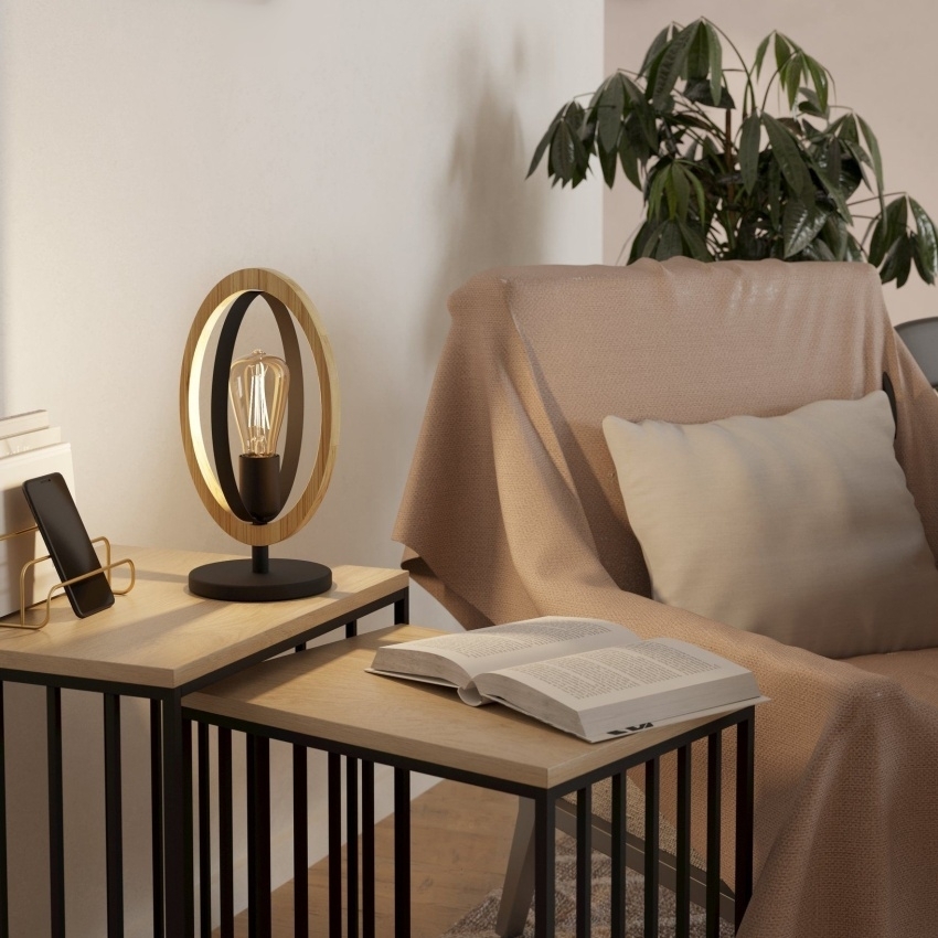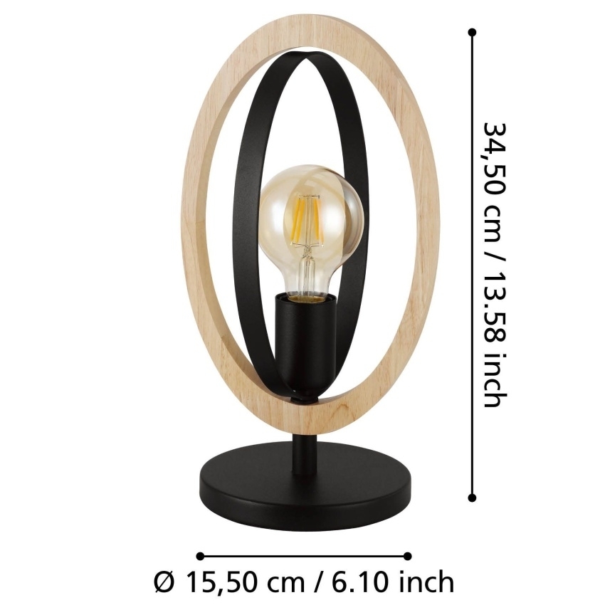 Elegantní stolní svítidlo Eglo BASILDON z černého kovu a hnědého dřeva s paticí E27.