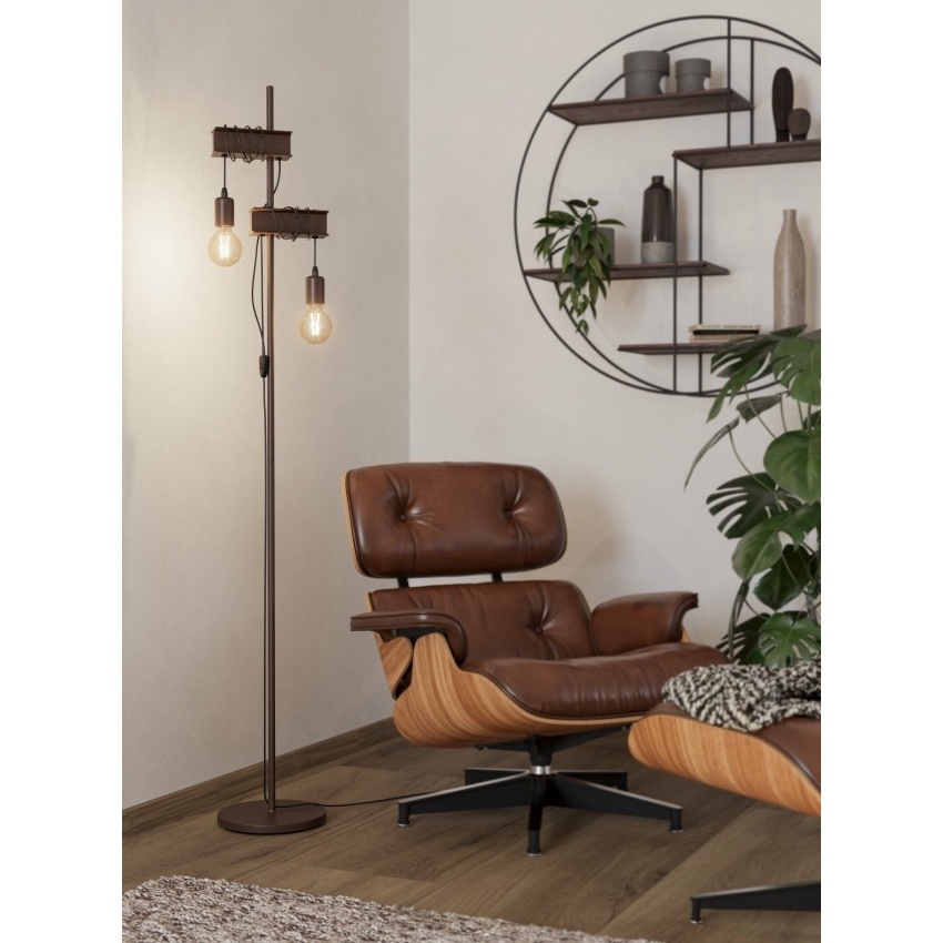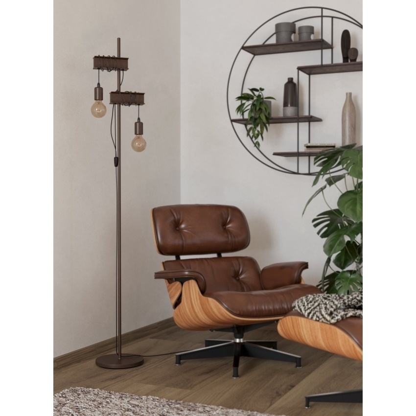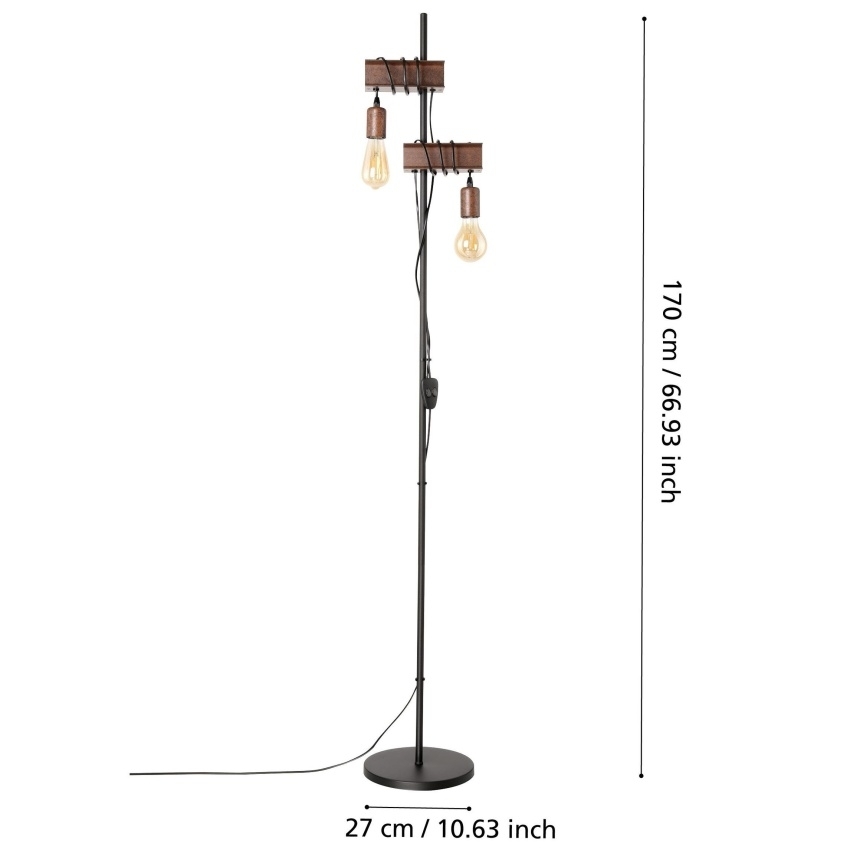 Stojací svítidlo Eglo TOWNSHEND 4 v antické hnědé barvě s černými detaily pro moderní industriální interiéry.