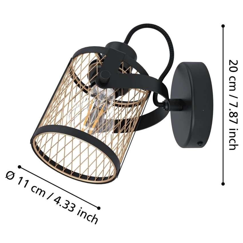Bodové svítidlo EGLO DELLOW kombinuje elegantní černou barvu s efektní mosaznou mřížkou, která dodává svítidlu originální vzhled. Díky pohyblivému spotu lze světlo nasměrovat přesně tam, kde je potřeba. Je vhodné pro instalaci na stěnu i strop, ideální nad pracovní desku, jídelní stůl, postel či k osvětlení obrazu nebo chodby. Žárovka s paticí E27 není součástí balení.