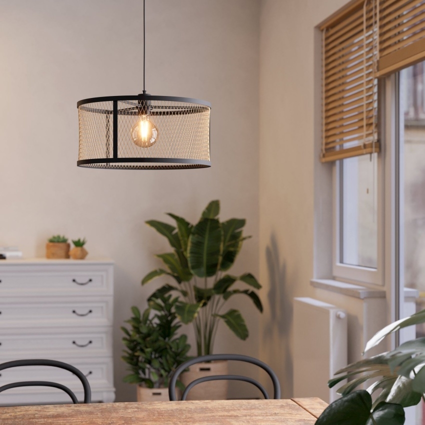 Závěsné svítidlo EGLO DELLOW zaujme elegantní kombinací černé barvy a mosazné mřížky kolem žárovky, která dodává svítidlu osobitý vzhled. Díky svému designu se hodí do moderních i industriálních interiérů. Skvěle se uplatní v jídelně, kuchyni, obývacím pokoji, ložnici, na schodišti nebo ve vstupní hale. Žárovka není součástí balení, takže si můžete vybrat libovolný tvar a styl, který podtrhne charakter svítidla.