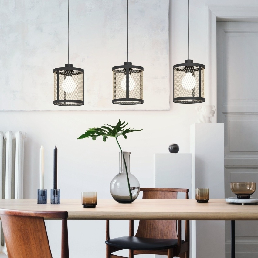 Závěsné svítidlo EGLO DELLOW se třemi žárovkami a stylovou kombinací černé a mosazné barvy.