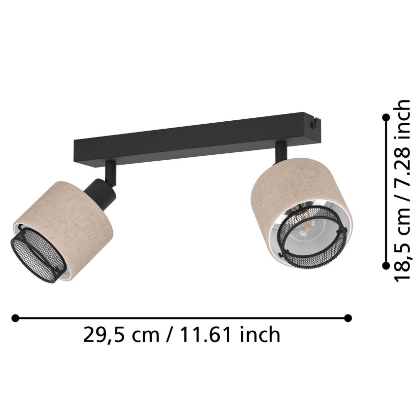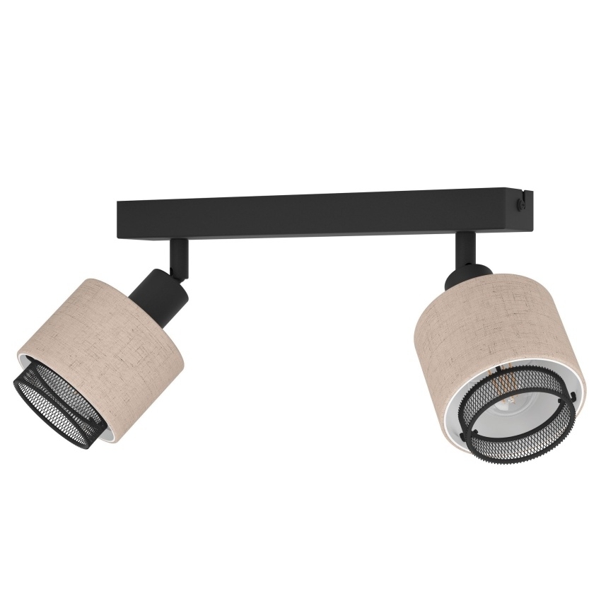 Stropní bodové svítidlo EGLO ROSLEY zaujme kombinací černé kovové konstrukce a přírodních textilních stínidel z lnu. Dvě pohyblivé hlavy umožňují nastavení směru světla podle vašich potřeb, ať už pro čtení, práci, nebo pro vytvoření příjemné atmosféry. Hodí se do obývacího pokoje, ložnice, chodby nebo pracovny. Žárovky nejsou součástí balení, doporučená patice E14 s max. výkonem 40 W.