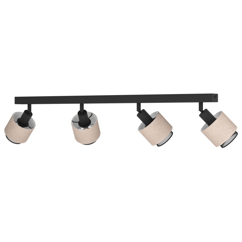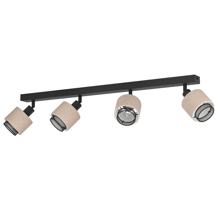 Stropní bodové svítidlo EGLO ROSLEY se čtyřmi nastavitelnými hlavami v kombinaci černého kovu a přírodního lněného stínidla, ideální pro moderní i klasické interiéry.