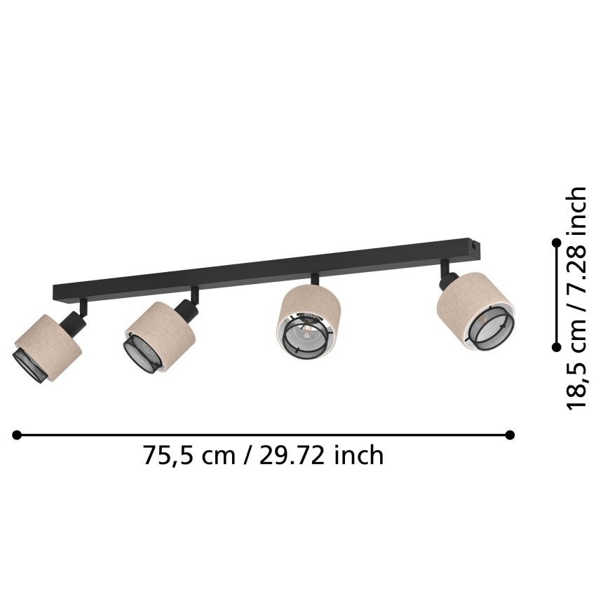 Stropní bodové svítidlo EGLO ROSLEY zaujme elegantním designem, který spojuje černý kov s přírodními textilními stínidly z lnu. Čtyři samostatně nastavitelné hlavy umožňují nasměrování světla přesně tam, kde ho potřebujete – například nad jídelní stůl, pracovní plochu nebo do obývacího pokoje. Toto svítidlo dodá interiéru útulnou atmosféru a hodí se také do ložnice, haly či chodby. Žárovky nejsou součástí balení, doporučená patice E14 s maximálním výkonem 40 W.