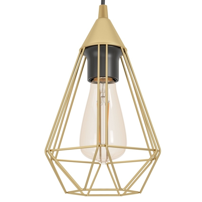 Stylové závěsné svítidlo EGLO TARBES v kartáčované mosazi s jemným drátěným stínidlem, které vynikne výběrem designové žárovky.