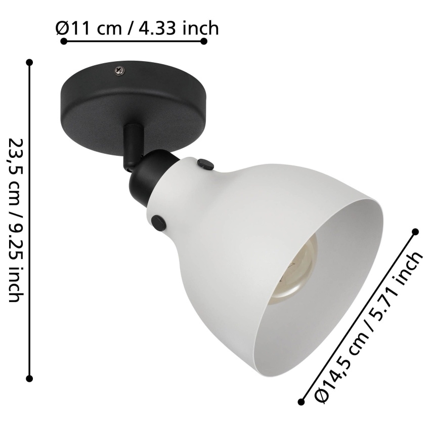 Bodové svítidlo EGLO MATLOCK v industriálním designu spojuje moderní styl s funkčností. Kulaté kovové stínidlo ve světle šedé barvě je doplněno černou základnou a jemnými detaily, což vytváří elegantní kontrast. Svítidlo lze instalovat jak na strop, tak na stěnu, a je ideální pro osvětlení kuchyně, obývacího pokoje, ložnice či chodby. Určeno pro patici E27, žárovka není součástí balení.