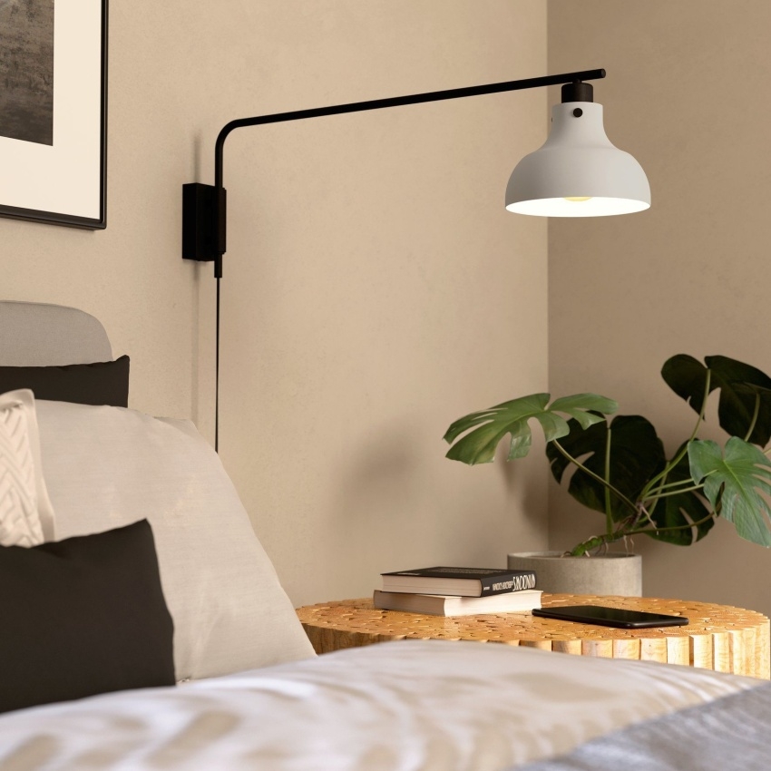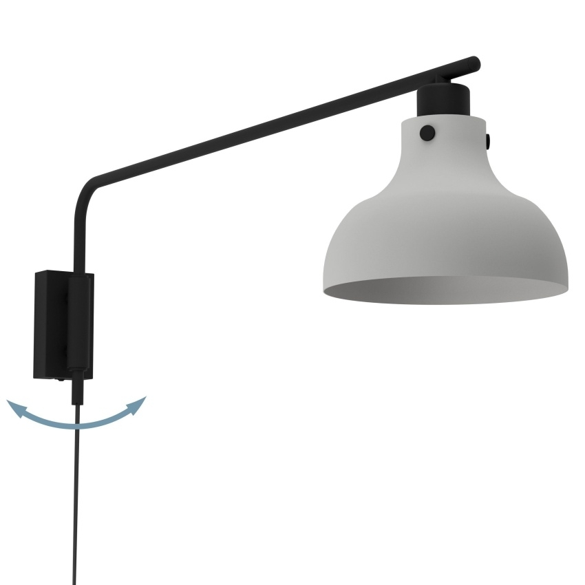 Nástěnné svítidlo MATLOCK od EGLO kombinuje černé ocelové tělo se světle šedým kulatým stínidlem a jemnými černými detaily pro výrazný industriální vzhled. Díky nastavitelnému ramenu snadno nasměrujete světlo přesně tam, kde ho potřebujete – ideální do kuchyně, obývacího pokoje, ložnice či chodby. Praktický vypínač na kabelu umožňuje pohodlné ovládání bez zásahu do elektroinstalace. Svítidlo je osazeno paticí E27 a je kompatibilní s různými typy žárovek; světelný zdroj není součástí balení.