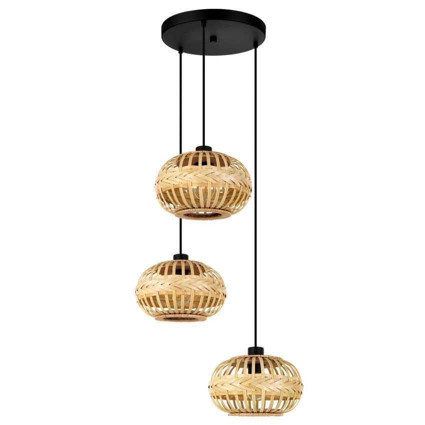 Závěsné svítidlo EGLO AMSFIELD 1 43864, 3×E27, černá/přírodní bambus