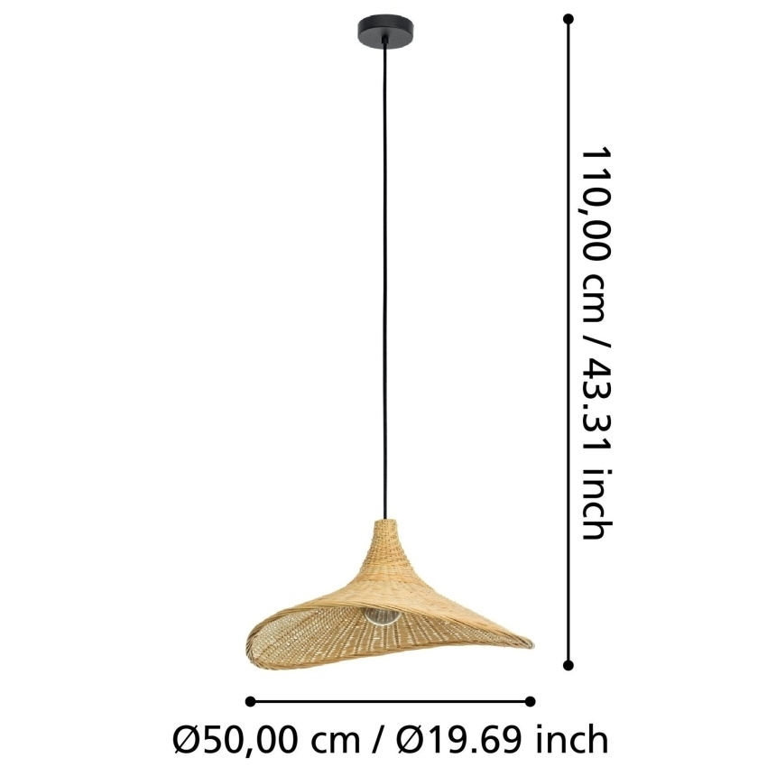 Závěsné svítidlo HAXEY od EGLO kombinuje přírodní bambusové proutí se stylovým černým kovovým prvkem. Zakřivené stínidlo z lehkého bambusu vytváří po rozsvícení příjemnou atmosféru a zajímavé světelné efekty. Svítidlo je zavěšeno na černém textilním lanku, které je připevněno ke kovovému vrchlíku v černém provedení. Díky svému přírodnímu designu se hodí do moderních interiérů v boho či skandinávském stylu. Ideální pro osvětlení jídelny, obývacího pokoje nebo kuchyně. Žárovka není součástí balení, svítidlo je kompatibilní se všemi typy žárovek s paticí E27.