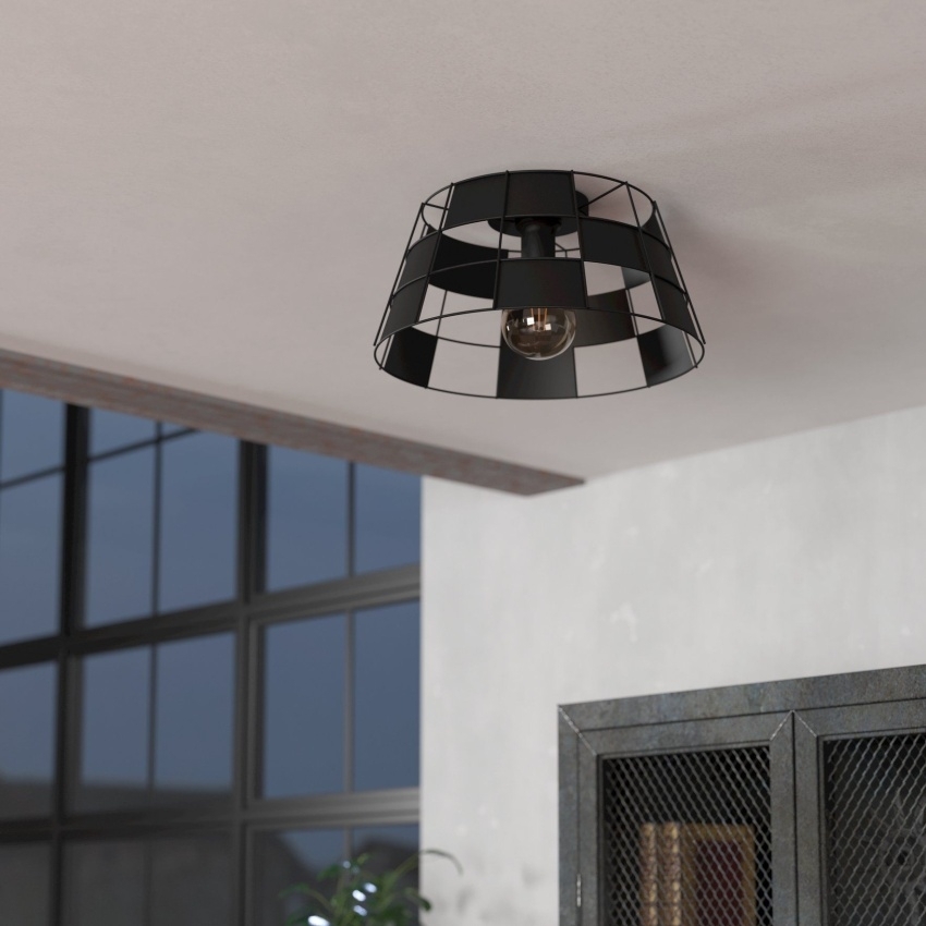 Stropní svítidlo PONTEFRACT od EGLO zaujme svým moderním industriálním designem. Kulaté kovové stínidlo v černé barvě je tvořeno čtvercovými otvory, které vytvářejí elegantní kostkovaný vzor. Po rozsvícení se na stěnách a stropě objeví jedinečná hra světla a stínů, která dodá interiéru stylovou atmosféru. Svítidlo se hodí do obývacího pokoje, ložnice, kuchyně i chodby a skvěle doplní moderní interiéry. Žárovka není součástí balení, svítidlo je kompatibilní se všemi typy žárovek s paticí E27.