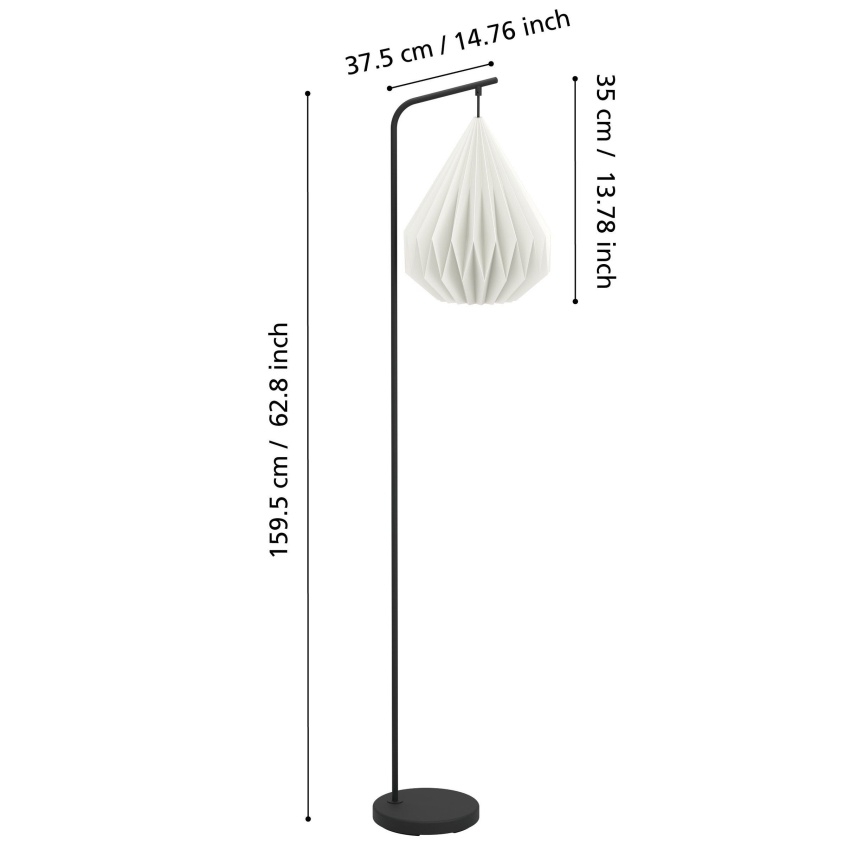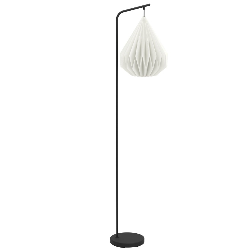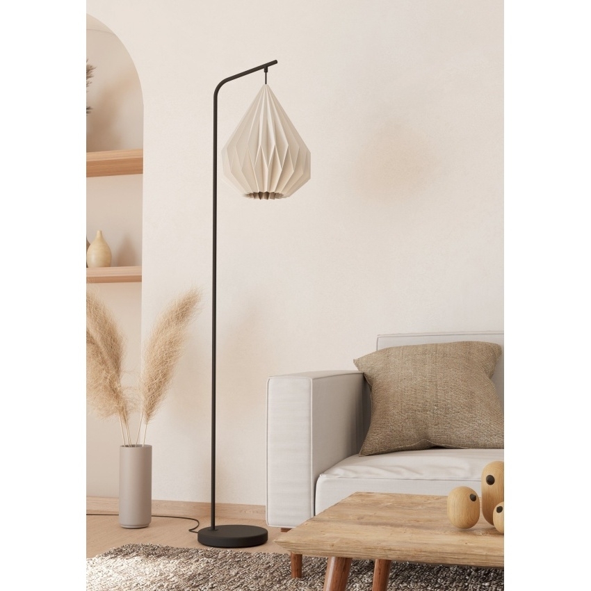 Stojací svítidlo MINTING od EGLO kombinuje minimalistický design s jemnými přírodními prvky. Bílé stínidlo ve tvaru slzy je vyrobeno ze skládaného papíru, který vytváří měkké a útulné světlo. Ocelová základna v černém provedení zajišťuje stabilitu a elegantní vzhled. Díky otvoru ve spodní části stínidla svítidlo poskytuje dostatek světla i do prostoru pod sebou. Ovládání je snadné pomocí nožního spínače na kabelu. Lampa se hodí do moderních i skandinávských interiérů, ideální do obývacího pokoje, ložnice nebo jídelny. Žárovka není součástí balení a lze použít jakýkoliv typ s paticí E27.