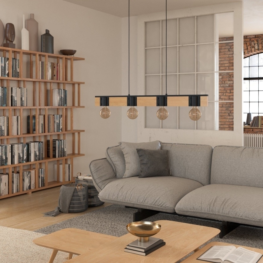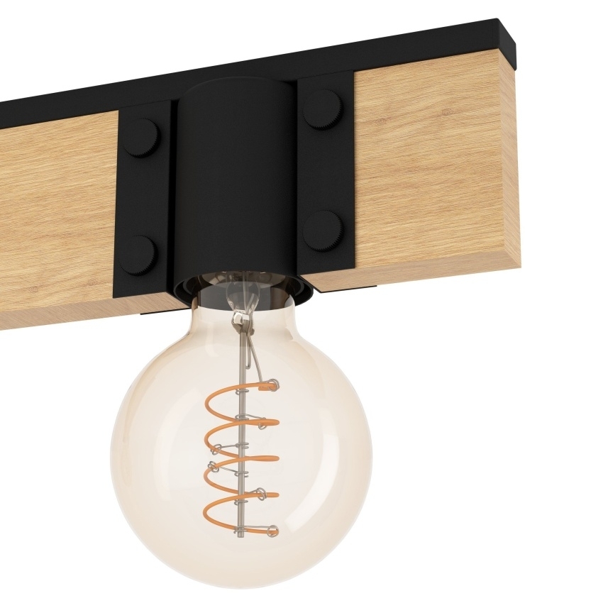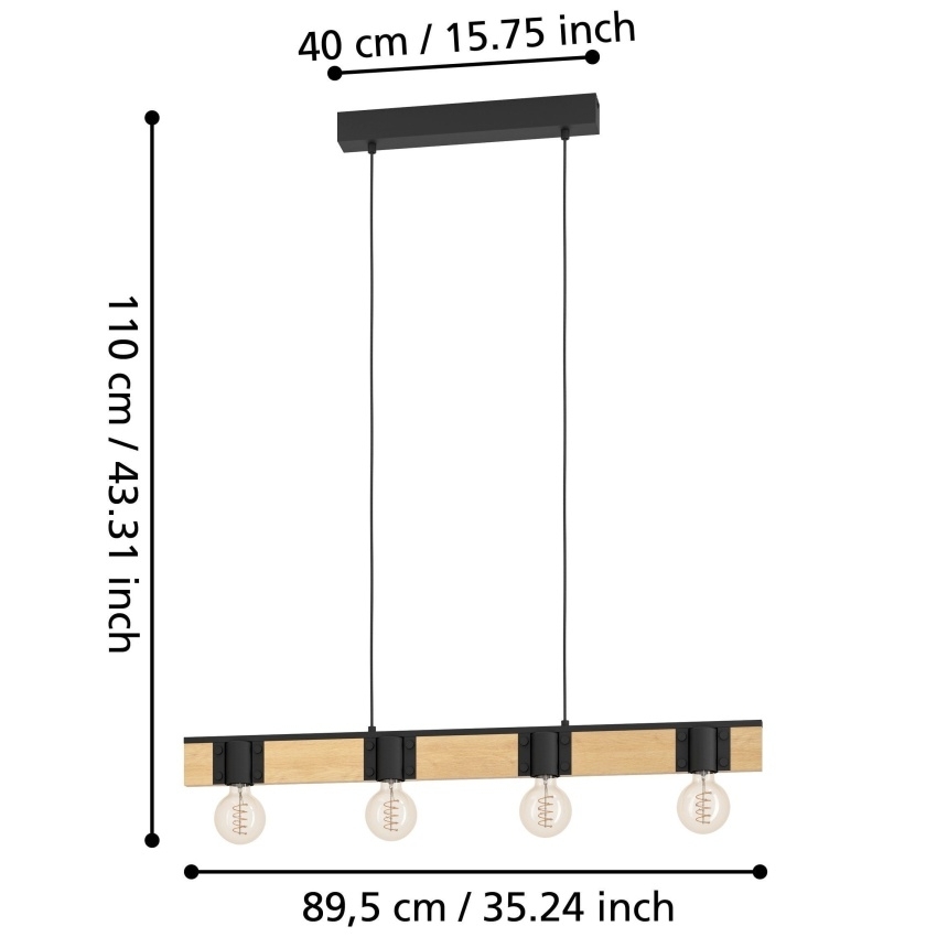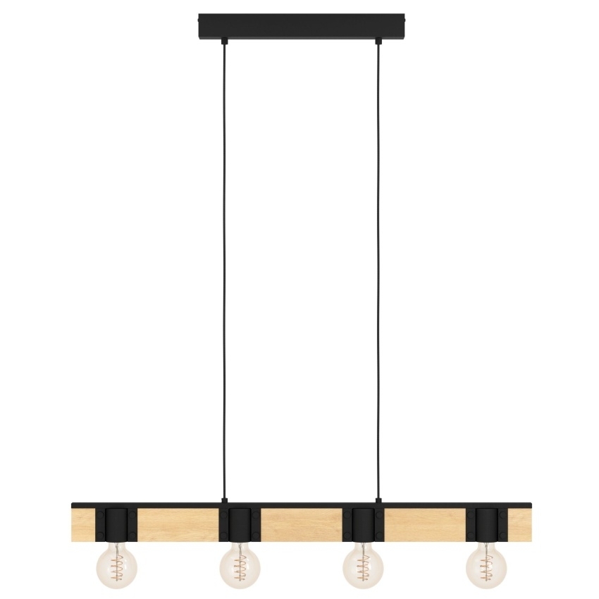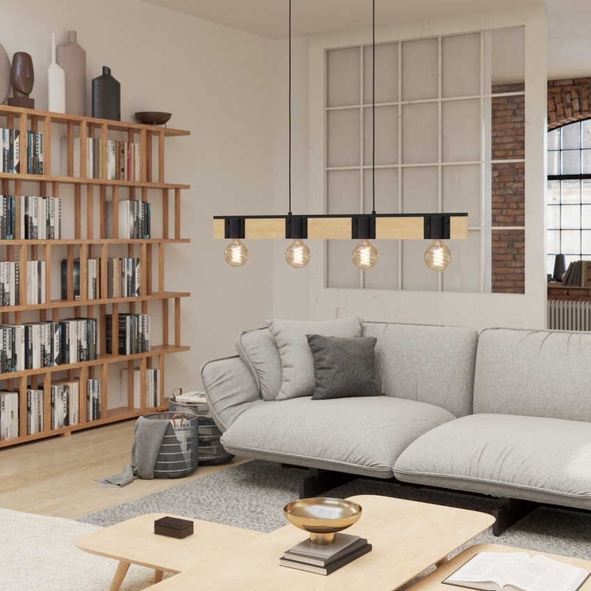 Závěsné svítidlo BAILRIGG od EGLO spojuje přírodní masivní dřevo s moderním černým kovem a vytváří tak elegantní a minimalistický vzhled. Obdélníková dřevěná tyč slouží jako základna pro čtyři černé kovové objímky, které umožňují použití různých typů žárovek s paticí E27. Tento design je ideální pro puristické a moderní interiéry, například nad jídelní stůl či do obývacího pokoje. Díky kombinaci přírodního dřeva a kovu působí svítidlo stylově a nadčasově. Žárovky nejsou součástí balení.