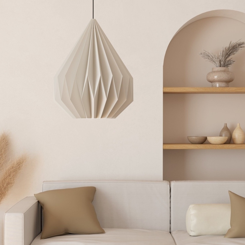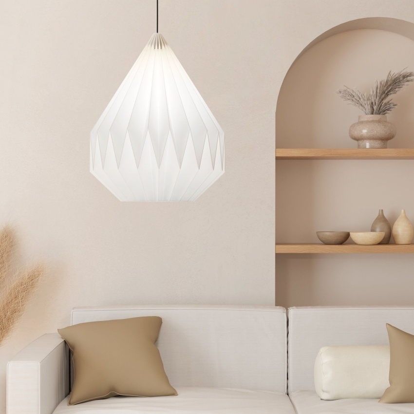 - Velké stínidlo z bílého skládaného papíru ve tvaru slzy