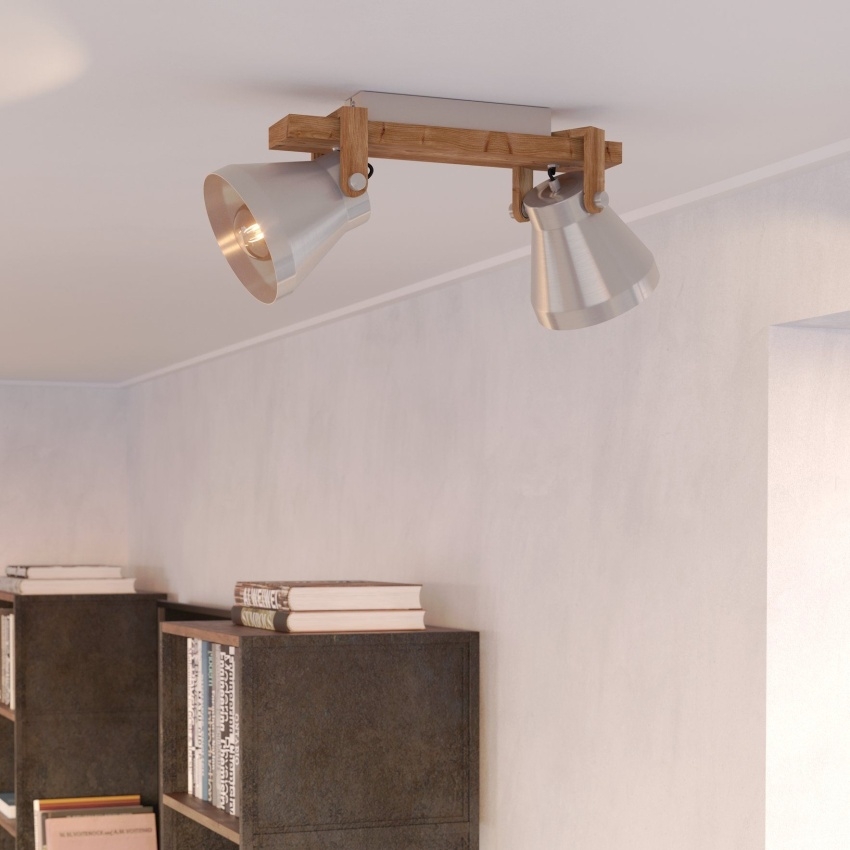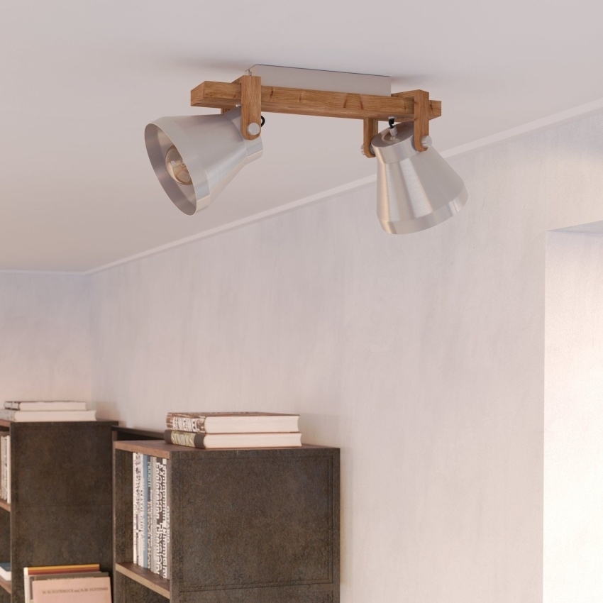EGLO SVÍTIDLO 43949 CAWTON 2XE27 STROPNÍ OCEL/HNĚDÁ RUSTIKAL