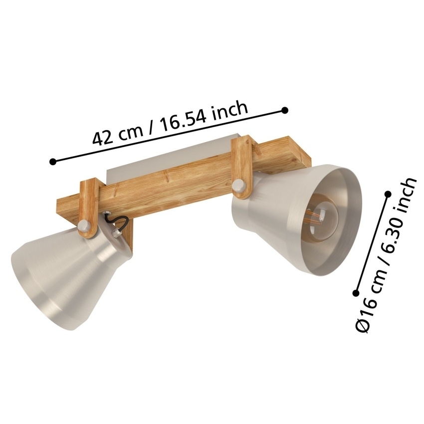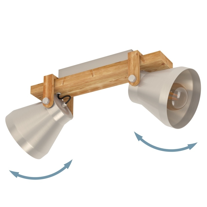 Stropní svítidlo CAWTON 43949 přináší jedinečný design spojující rustikální prvky s industriálním stylem. Je vyrobeno z hnědého páleného dřeva a kovového rámu v krémové barvě, který doplňují dvě otočná stínidla z matné oceli. Díky otočným světelným bodům můžete snadno nasměrovat světlo přesně tam, kde je potřeba, a vytvořit tak ideální osvětlení pro každou místnost. Svítidlo je vhodné pro obývací pokoje, ložnice, jídelny i chodby. Je určeno pro dvě žárovky s paticí E27 a maximálním výkonem 2×40 W, které nejsou součástí balení, což vám dává možnost vybrat si světelný zdroj podle svých preferencí.