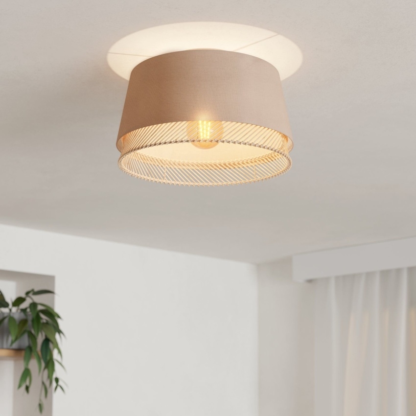 Stropní svítidlo EGLO TABLEY 43974 s kombinací lněného a bambusového stínidla, ideální pro vytvoření útulné atmosféry v přírodním stylu.
