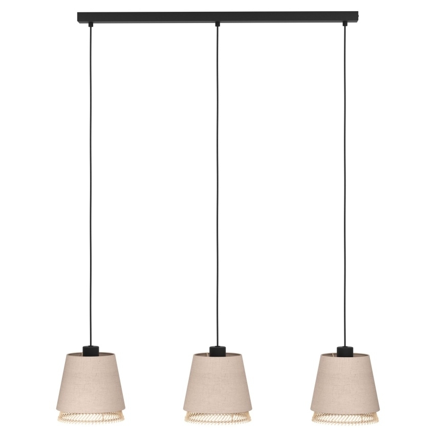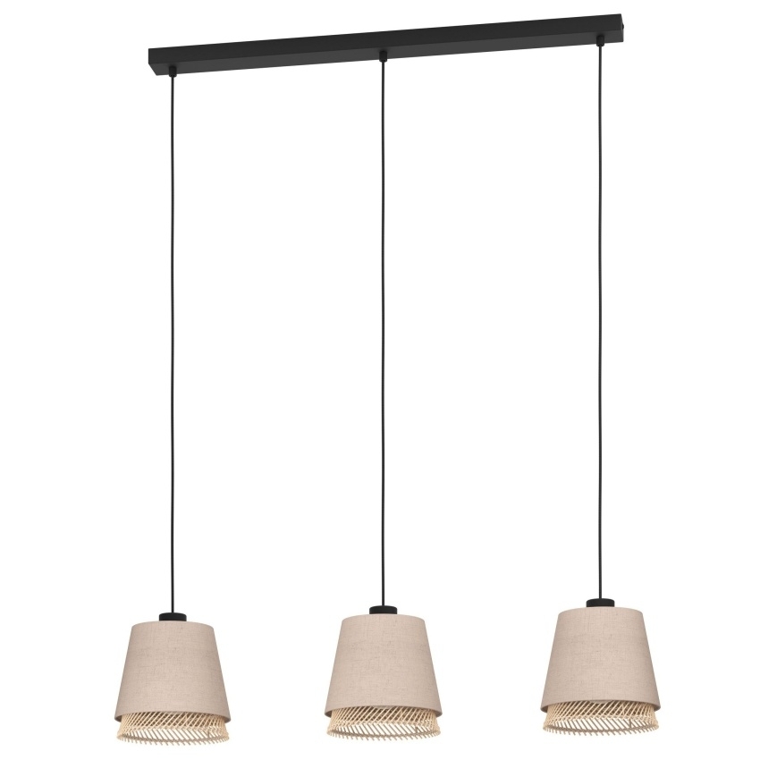Závěsné svítidlo EGLO TABLEY 43976 s trojitým designem stínidel z lnu a bambusu, ideální pro osvětlení jídelního stolu nebo obývacího pokoje v přírodním stylu.