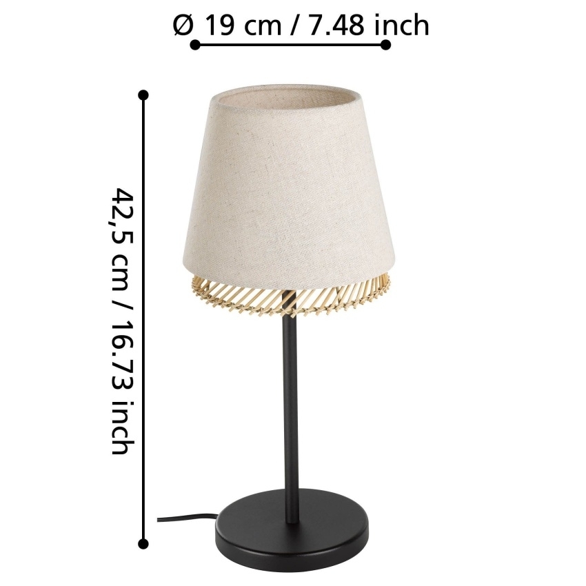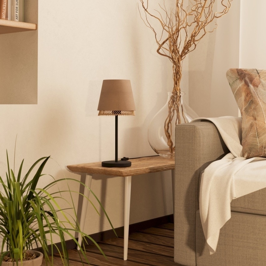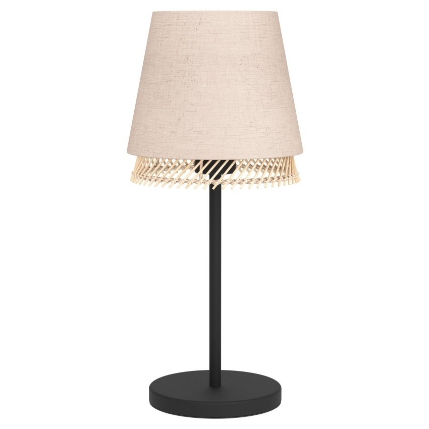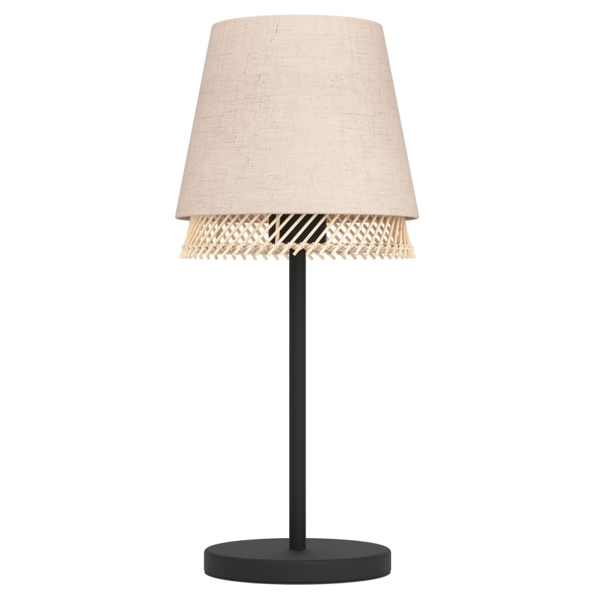 Stolní svítidlo EGLO TABLEY 43977 s kombinací lněného a bambusového stínidla na černé kovové základně, ideální pro útulné osvětlení v přírodním stylu.