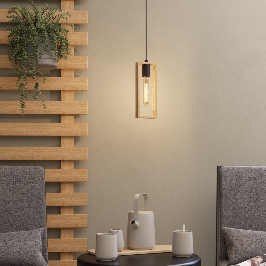 Závěsné svítidlo LITTLETON 44051 je elegantním osvětlením, které propojuje přírodní prvky s moderním designem. Kombinace černého kovového závěsu a dřevěného stínidla v hnědém odstínu vytváří stylový kontrast, který se skvěle hodí do jídelny, kuchyně nebo obývacího pokoje. Díky svému minimalistickému vzhledu zapadne jak do moderních, tak industriálních interiérů. Svítidlo je určeno pro jednu žárovku s paticí E27 a maximálním výkonem 40 W, která není součástí balení, což vám umožňuje vybrat světelný zdroj podle vašich potřeb.