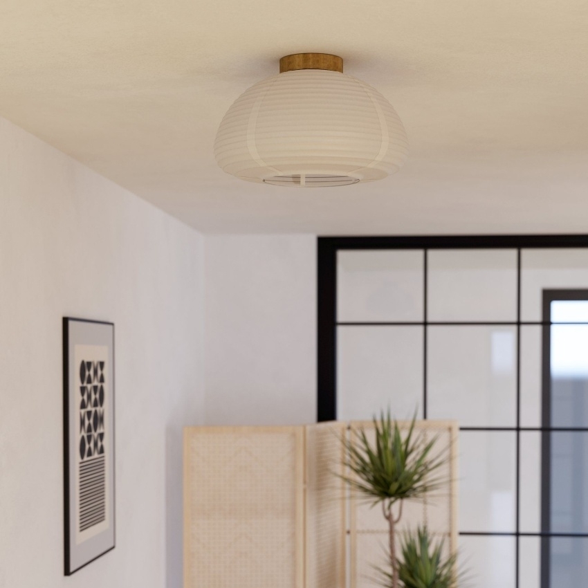 Stropní svítidlo SUMMERHILL 44063 je navrženo v duchu populárního Japandi stylu, který propojuje japonský minimalismus a skandinávskou jednoduchost. Kulaté stínidlo z bílého rýžového papíru působí lehce a vzdušně, zatímco dřevěný prvek z FSC certifikovaného gumovníku dodává svítidlu přírodní akcent. Díky svému čistému designu se perfektně hodí do ložnice, obývacího pokoje, jídelny nebo chodby a přispívá k vytvoření klidné a harmonické atmosféry. Svítidlo je určeno pro jednu žárovku s paticí E27 a maximálním výkonem 40 W, která není součástí balení.