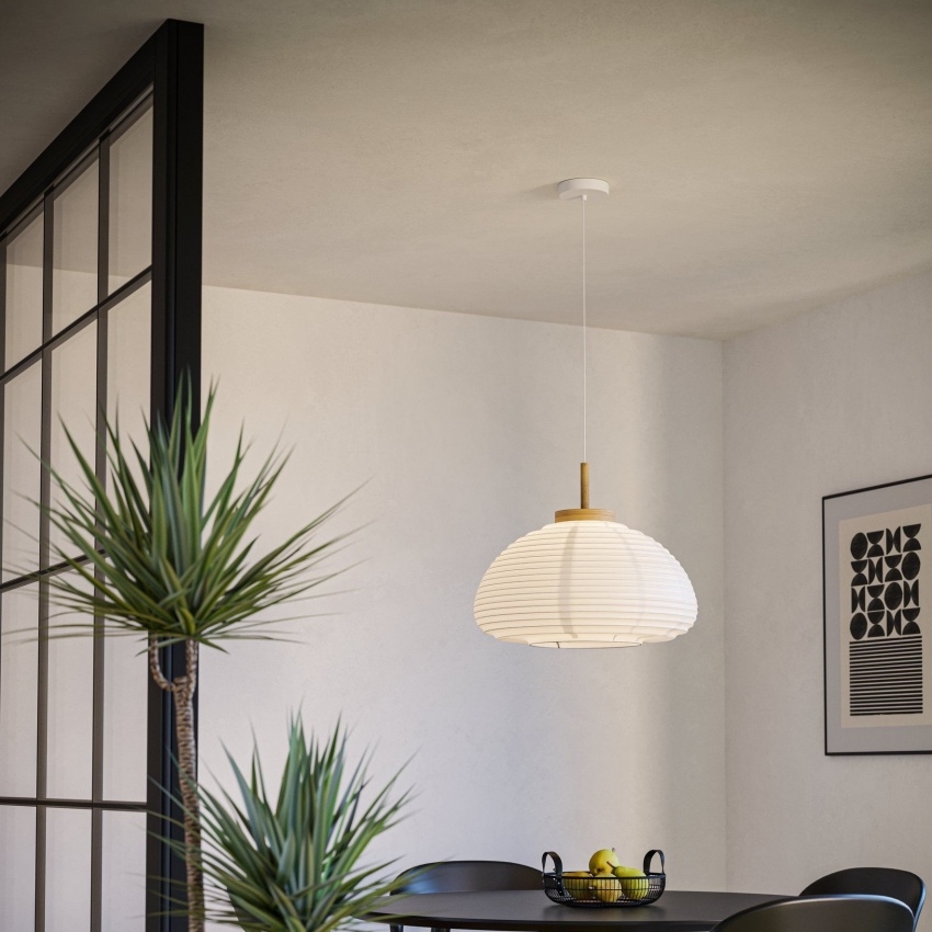 Závěsné svítidlo EGLO SUMMERHILL 44064 s jemným rýžovým papírovým stínidlem, ideální pro moderní interiéry v Japandi stylu.