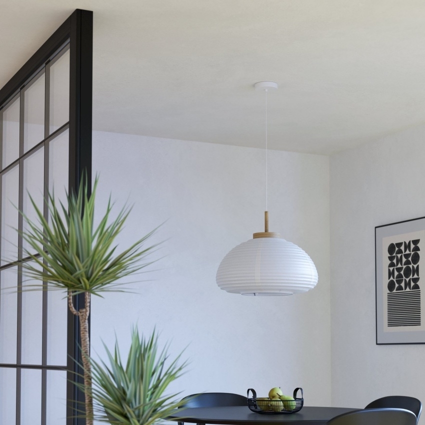 Závěsné svítidlo SUMMERHILL 44064 kombinuje jednoduchost japonského minimalismu s útulností skandinávského stylu. Kulaté stínidlo z bílého rýžového papíru působí vzdušně a elegantně, zatímco dřevěný prvek z FSC certifikovaného gumovníku dodává svítidlu přírodní vzhled. Díky svému harmonickému designu se skvěle hodí do obývacího pokoje, ložnice, jídelny či chodby a vytváří klidnou a příjemnou atmosféru. Svítidlo je určeno pro jednu žárovku s paticí E27 a maximálním výkonem 40 W, která není součástí balení.