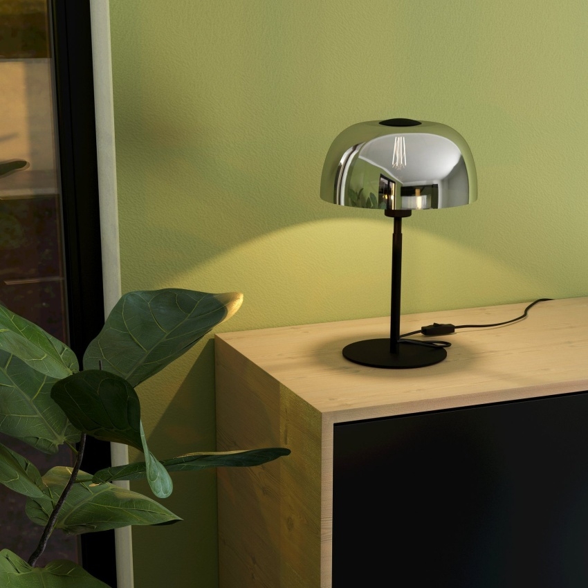 Stolní svítidlo EGLO SOLO 2 900141 spojuje moderní design s funkčností. Černý kovový podstavec doplňuje kulaté stínidlo z kouřového skla, které vytváří příjemnou atmosféru a jemně rozptyluje světlo. Svítidlo je ideální pro ložnici, obývací pokoj nebo předsíň a díky vypínači na kabelu se snadno ovládá. Je kompatibilní s jakoukoli žárovkou s paticí E27, která není součástí balení.