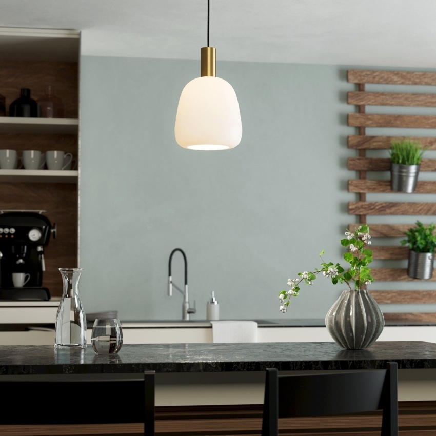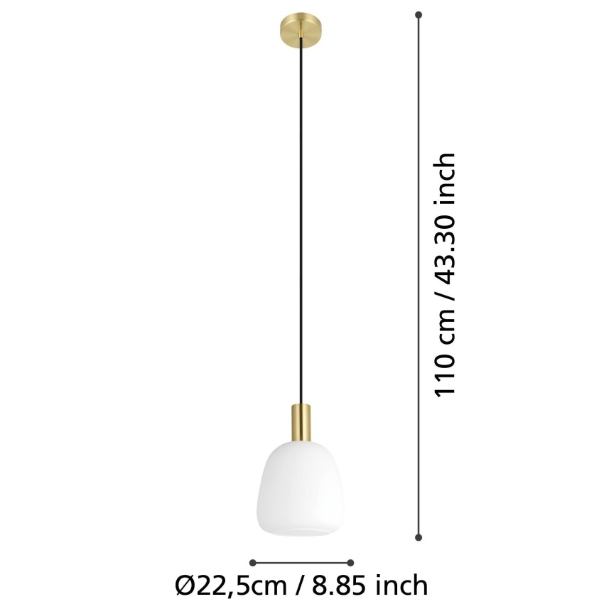 Závěsné svítidlo EGLO MANZANARES 900305 – elegantní osvětlení s opálovým sklem a mosaznými detaily.