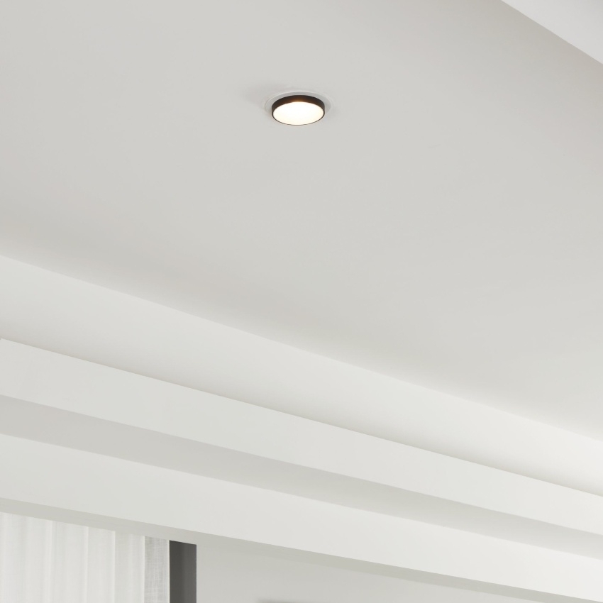 Vestavné svítidlo CAROSSO je vyrobeno z kvalitního bílého hliníku a doplněno elegantním černým hliníkovým kroužkem, který vytváří atraktivní kontrast. Díky nadčasovému designu je ideální pro různá místa v interiéru, jako jsou kuchyně, obývací pokoj, ložnice či předsíň. Pro montáž je potřeba stropní výřez o průměru 68 mm, přičemž montážní hloubka se odvíjí od použitého světelného zdroje. Lampa je určena pro žárovku s paticí GU10, která není součástí balení.
