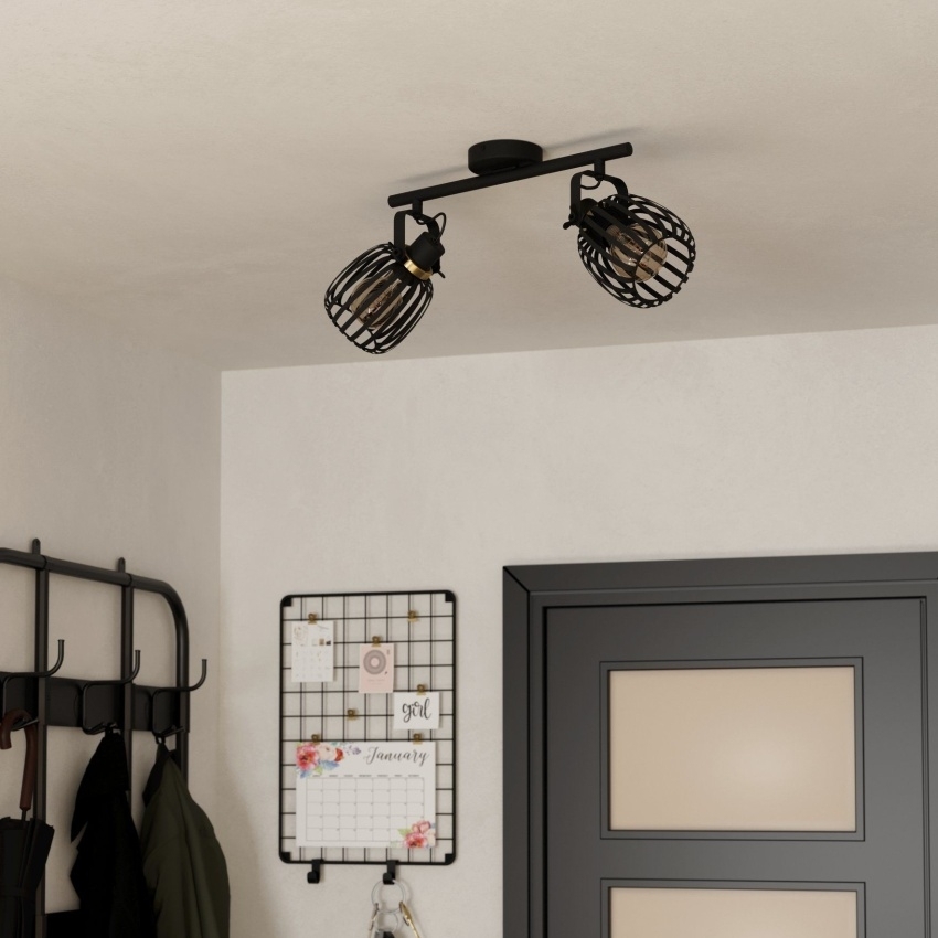 Stropní svítidlo EGLO GIRONA 900662 je vyrobeno z kvalitního černého kovu doplněného ozdobnými kroužky v kartáčované mosazi. Tato atraktivní barevná kombinace dodává svítidlu moderní a elegantní vzhled. Dvě samostatná stínidla umožňují nasměrování světla dle potřeby, což zajišťuje praktické a efektivní osvětlení. Svítidlo se hodí do ložnice, obývacího pokoje, chodby či kuchyně. Žárovky nejsou součástí balení.