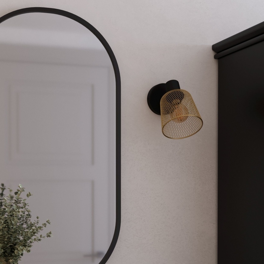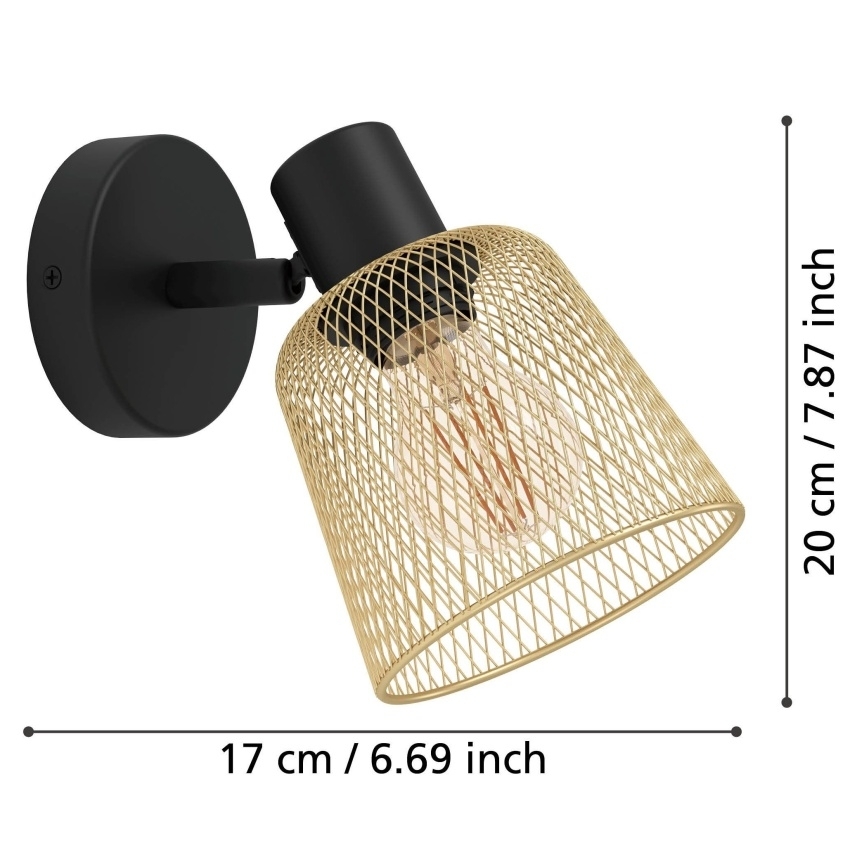 Nástěnné svítidlo EGLO COSLADA zaujme svým moderním designem kombinujícím černou strukturovanou barvu a broušenou mosaz. Stínidlo je vyrobeno z expandované kovové síťoviny, která vytváří zajímavé světelné efekty a dodává interiéru jedinečný styl. Svítidlo je ideální pro cílené osvětlení v kuchyni, obývacím pokoji, ložnici či na chodbě. Doporučuje se použití dekorativní spirálové žárovky s paticí E27, která podtrhne jeho elegantní vzhled.