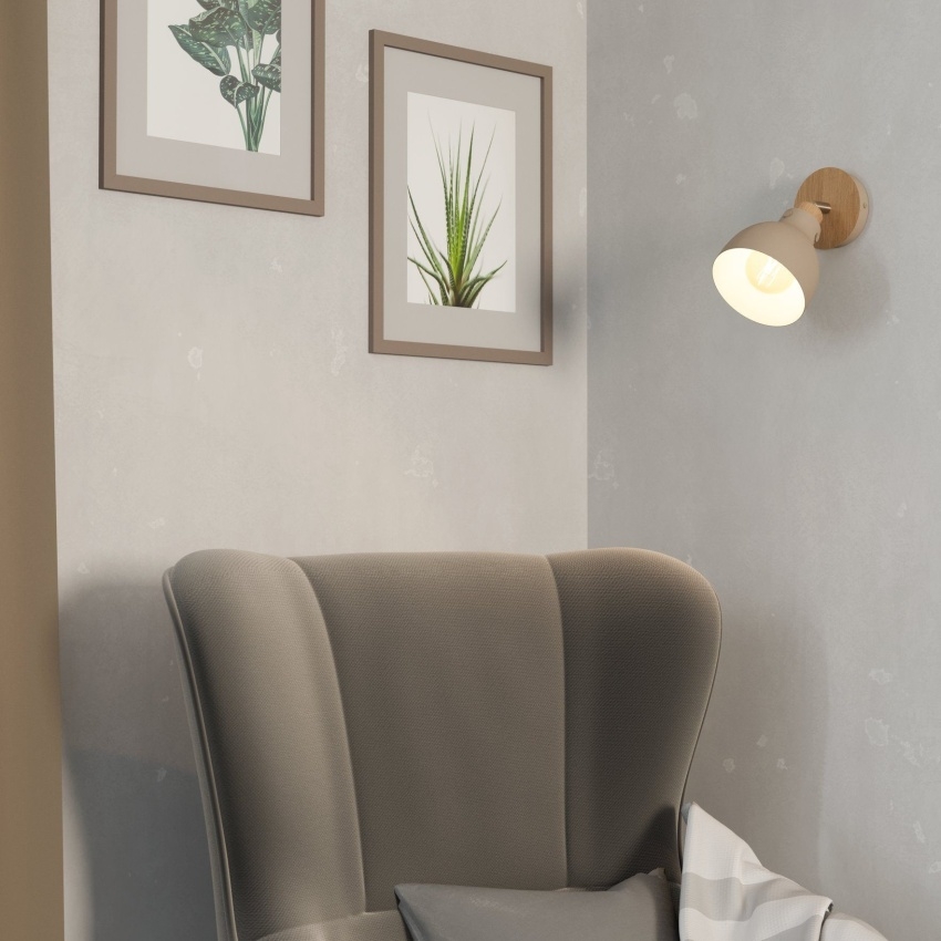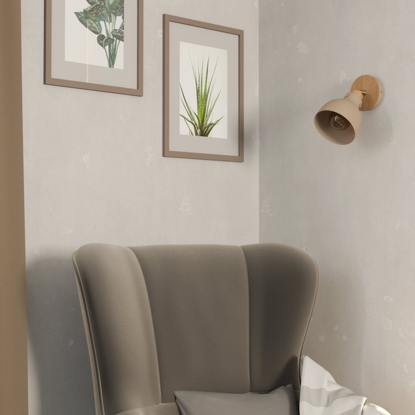 Bodové svítidlo EGLO ARRECIFE kombinuje moderní design s nádechem vintage a industrial stylu. Konstrukce je vyrobena z kovového závěsu ve vzhledu dřeva a doplněna pohyblivým stínidlem v pískové barvě. Díky otočné hlavě lze světlo nasměrovat přesně tam, kde je potřeba, což umožňuje vytvořit individuální světelné akcenty v místnosti. Svítidlo lze použít jako nástěnné i stropní a je vhodné pro různé prostory, jako je obývací pokoj, kuchyně, ložnice, chodba či jídelna. Žárovka není součástí balení a je třeba ji dokoupit samostatně.