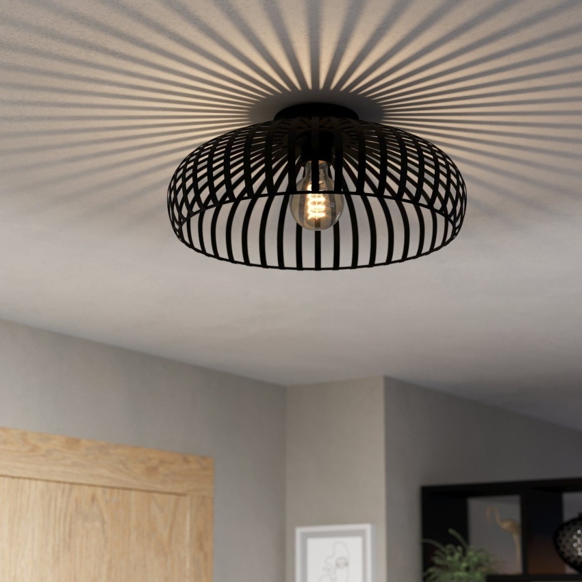 Stropní svítidlo EGLO MOGANO 3 zaujme moderním a minimalistickým designem. Kulaté stínidlo je vyrobeno z černého plochého kovu, jehož vzpěry vytvářejí po rozsvícení působivé světelné efekty a zajímavou hru světla a stínu. Díky svému monochromatickému provedení se hodí do různých interiérů, jako je obývací pokoj, kuchyně, ložnice či chodba. Svítidlo je určeno pro žárovku s paticí E27, která není součástí balení, což vám umožní zvolit typ světla podle vlastních preferencí.